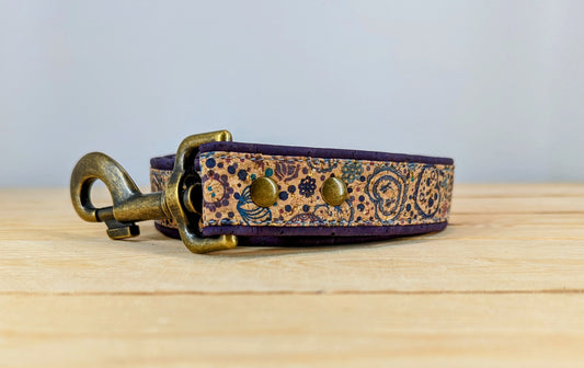 Cork Vegan Leather Purple Hearts Dog Lead
