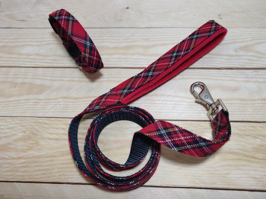 Red Tartan Fleece Lined Martingale/Half-check Dog Collar