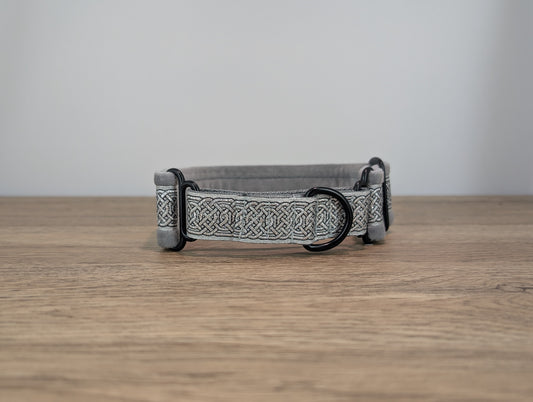 Silver Grey Celtic Velvet Lined Martingale/Half-check Dog Collar