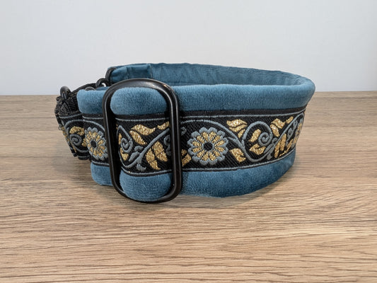 Duck Egg Blue Velvet Lined Martingale/Half-check Dog Collar