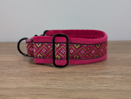 Cerise Pink Velvet Lined Martingale/Half-check Dog Collar