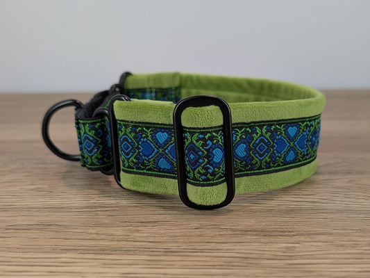 Green Velvet Lined Martingale/Half-check Dog Collar