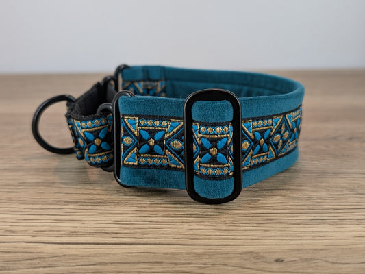 Teal Velvet Lined Martingale/Half-check Dog Collar