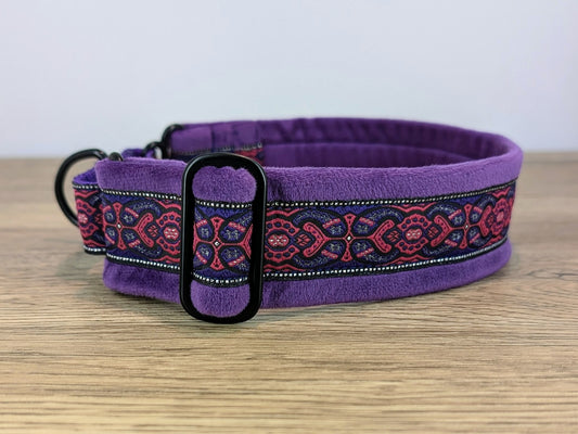 Purple Velvet Lined Martingale/Half-check Dog Collar