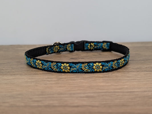 Turquoise and Yellow Floral Small Dog/Puppy Collar