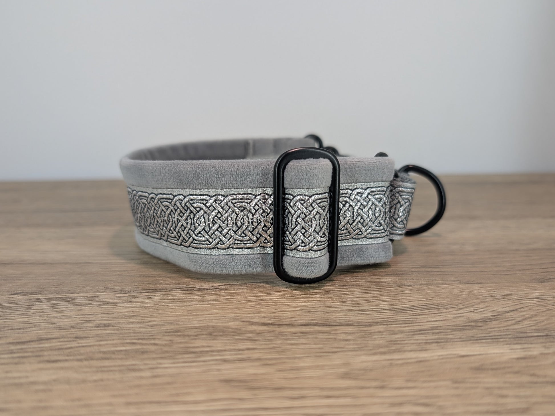 Silver Grey Celtic Velvet Lined Martingale/Half-check Dog Collar